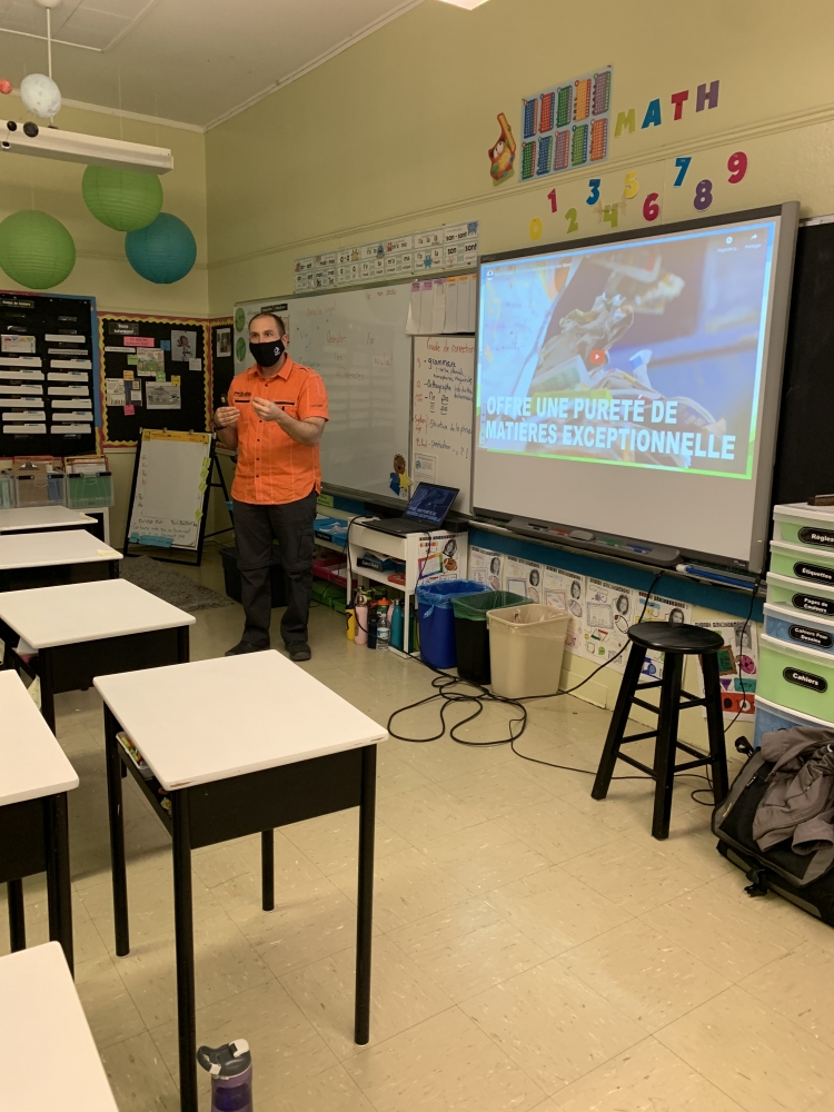 ExpiréLe 20 novembre dernier, M. Eric Demers, directeur du service de déchets solides pour la Commission de services régionaux de Kent, est venu parler de recyclage ainsi que des métiers et professions reliés à ce domaine aux élèves de 5e-6e année. Il a fait une présentation et a répondu aux divers questions des élèves.