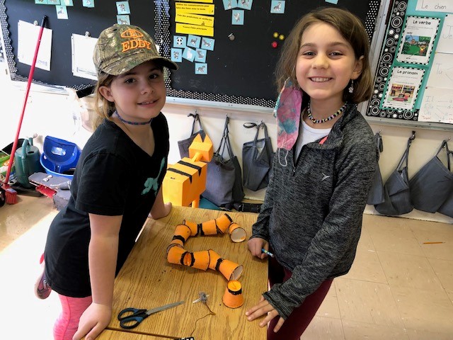 Une fois les animaux choisis, les élèves ont préparé des maquettes en matériaux recyclés. M. Mario Levesque de l'organisme Place aux compétences (PAC) a ensuite offert des conseils et de l'aide aux élèves afin de robotiser leurs créations. En faisant bouger certaines parties de leur maquette, les élèves peuvent mieux expliquer les adaptations de certains animaux.
